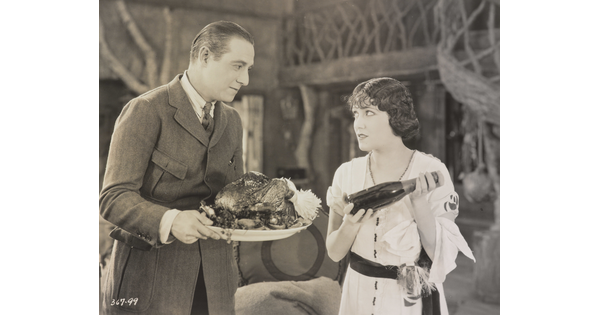 • [Elliot Dexter holding turkey platter with Gloria Swanson holding wine bottle, "Affairs of Anatol” outtake used in “Don’t Tell Everything"]
