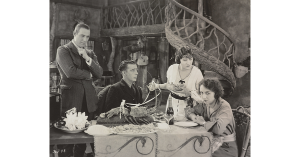 • [Elliot Dexter, Wallace Reid and Gloria Swanson and Dorothy Cumming around dinner table, "Affairs of Anatol” outtake used in “Don’t Tell Everything"]