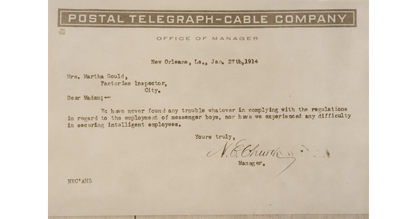 • Postal Telegraph Co. [Letter, New Orleans, January 1914]