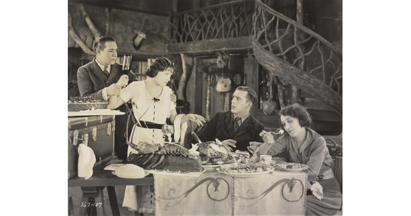 [Elliot Dexter restraining Gloria Swanson from hitting Wallace Reid with wine bottle, "Affairs of Anatol” outtake used in “Don’t Tell Everything"]