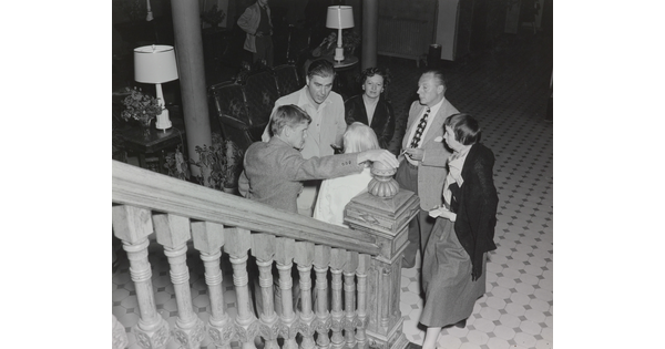 www.cartermuseum.org/.../group-including-eliot-porter-and-berenice-abbott-standing-bottom-stairway-talking