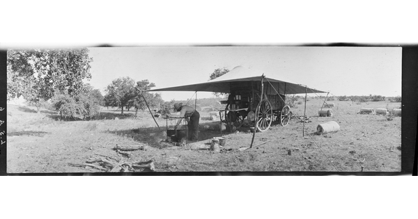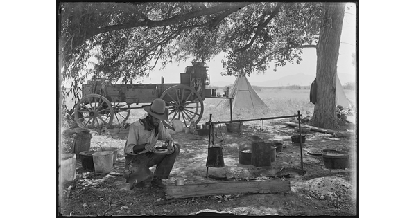 www.cartermuseum.org/.../uncle-harve-norris-famous-wagon-boss-ja-john-adair-outfit-tents-roundup-camp-background