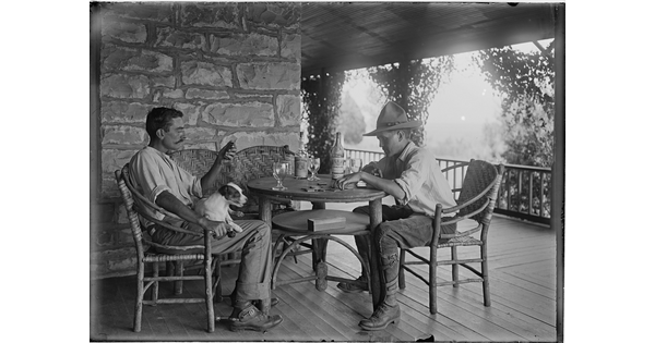 • On the Veranda of the JA Ranch Headquarters. George Pattullo Drinking and Playing Dominoes with Robert Faure, a Nephew of the President of France, JA Ranch, Texas