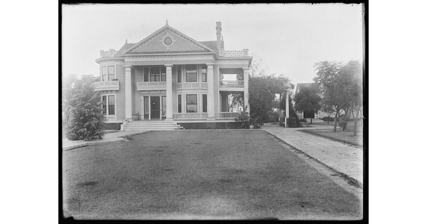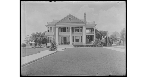 • Home of Mrs. P.H. (Nancy Erwin) White, mother of Erwin E. Smith, photographer. Smith's studio and photographic darkroom is housed in the barn at right. Bonham, Texas.