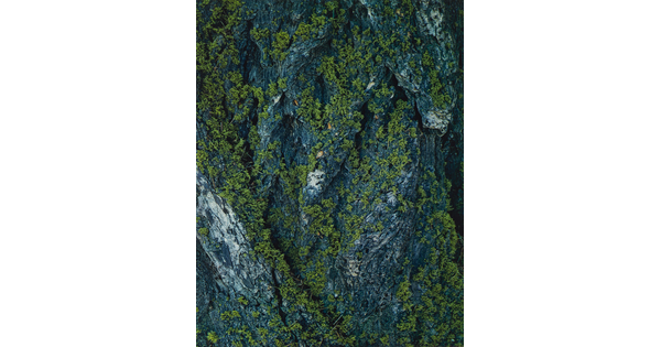 • A black-and-white photograph of a rocky cliff with a large tree growing precariously over the edge.