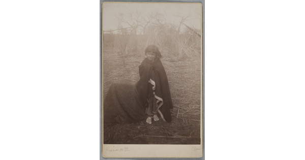 • [Portrait of girl wearing buckskin dress with cowrie shells]