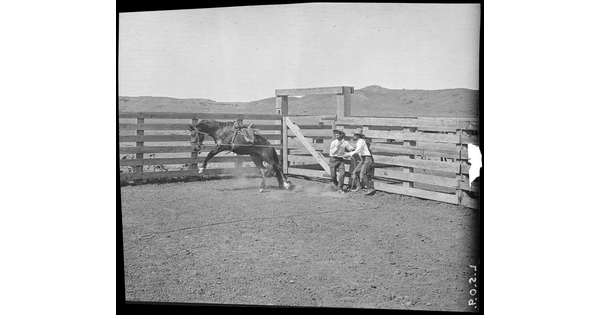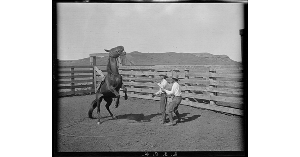 www.cartermuseum.org/.../zack-t-burkett-left-and-monclavio-lucero-right-working-unbroken-horse-ls-corral-ls-ranch