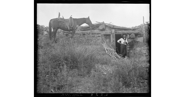 www.cartermuseum.org/.../cowboy-standing-doorway-half-dugout-line-camp-ls-range-ls-ranch-texas-lcs59136