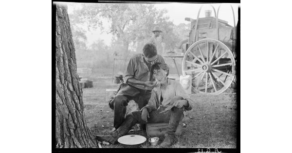• The JA Wagon Cook Taking a Shave, JA Ranch, Texas. Robert Faure ("Frenchy") Does the Shaving