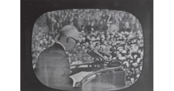 • [President Eisenhower speaking at podium]