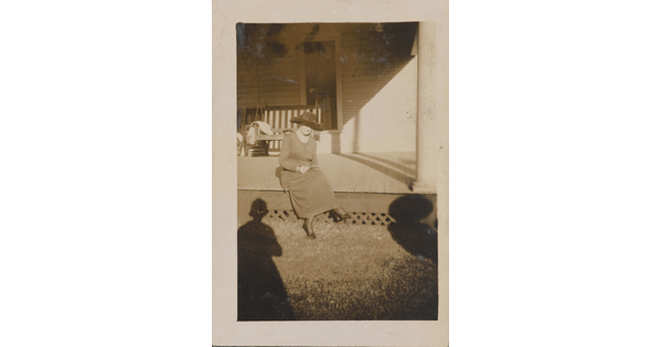 • [Woman sitting on front porch]
