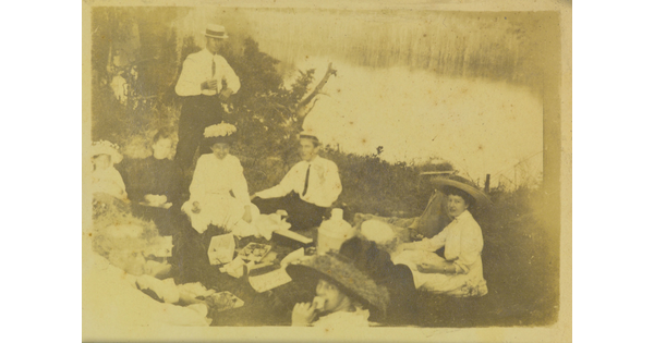 • [Group picnicking near river]