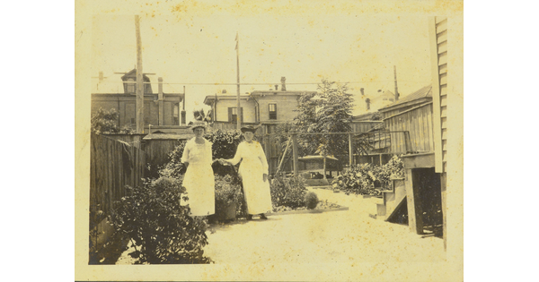 • [Two women stading in garden]