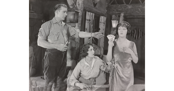[Wallace Reid with Dorothy Cumming and Gloria Swanson holding cards, "Affairs of Anatol” outtake used in “Don’t Tell Everything” outtake used in “Don’t Tell Everything"]