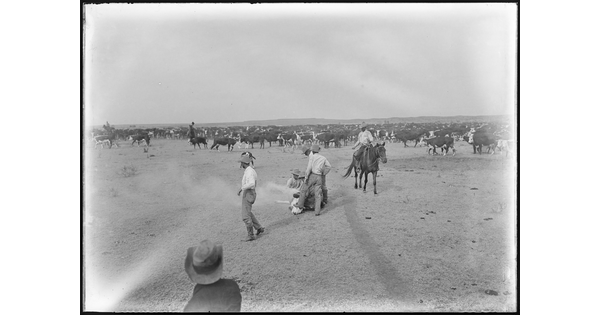 www.cartermuseum.org/.../branding-calves-windy-day-smoke-and-dust-curling-one-side-while-hot-iron-being-applied