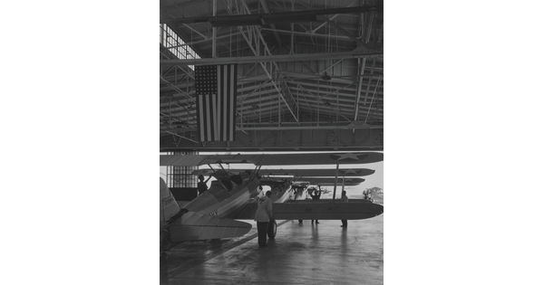 • [Biplanes in Boeing hangar, Wichita, Kansas]