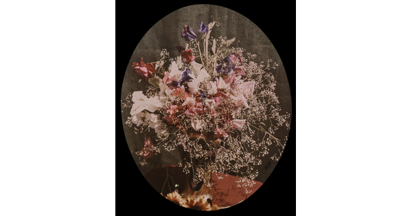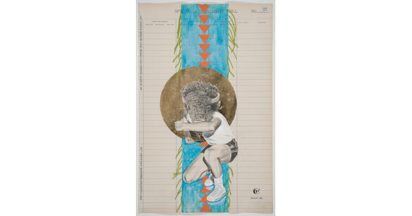 Graphite, ink, watercolor, gold leaf, and embroidery floss on antique ledger paper