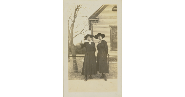 • [Two women standing in front of house]
