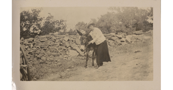 • [Woman standing next to donkey]
