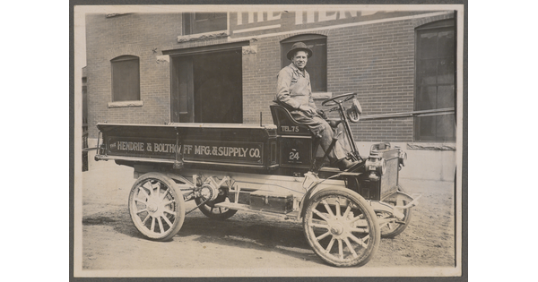 • [John A. Bohlen driving Hendrie & Bolthoff company truck]