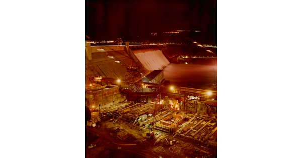 www.cartermuseum.org/.../night-construction-activity-third-powerplant-forebay-dam-looking-across-spillway-grand