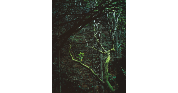 • A black-and-white photograph of a open-palmed hand covered with snails crawling on the fingers and palm.