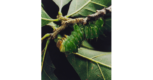 TeleaPolyphemus Larva, 4 Weeks Old, Molting Sequence 1, #1, Tesuque, New Mexico, August 1960