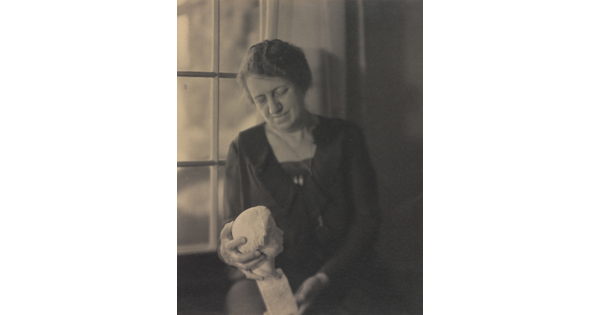 • Lucy Miller Taylor Holding Plaster Head of Laura Gilpin Made by Brenda Putnam
