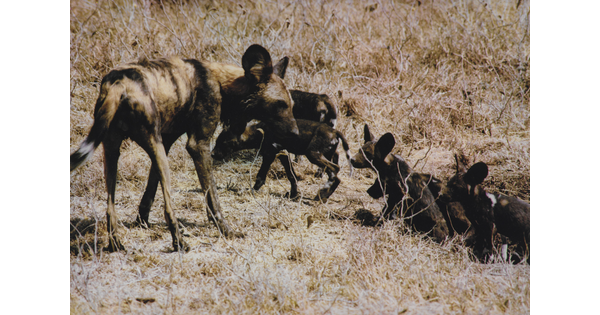 • Wild Dog with Pups at Their Den, Serengeti, Tanzania, Africa, 1970