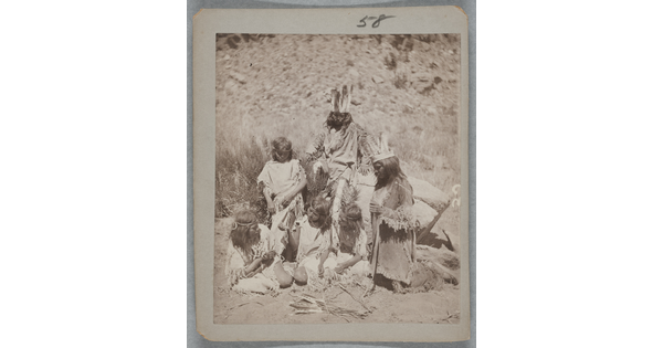 www.cartermuseum.org/.../group-young-women-and-man-fringed-buckskins-two-feather-headresses-looking-necklace-near
