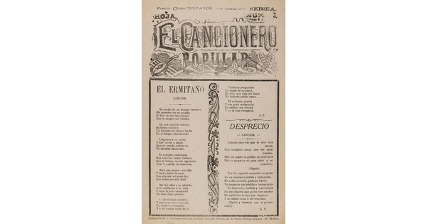 • El Cancionero Popular. Serie A, Hoja Num. 3. El ermitaño; Desprecio