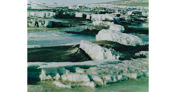 Melting Ice and Moraine, Royal Society Mountains, Dailey Islands, McMurdo Sound, Antarctica, December 30, 1975