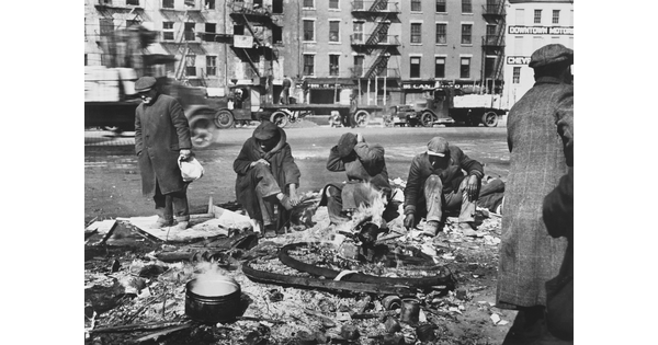 • Unemployed Gather on South Street along the Waterfront in New York City in the Great Depression of 1935