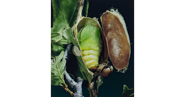 Telea polyphemus Larva, 7-8 Weeks Pupation Sequence 1, #15, Advanced Pupal Shedding, Tesuque, New Mexico, September 1960