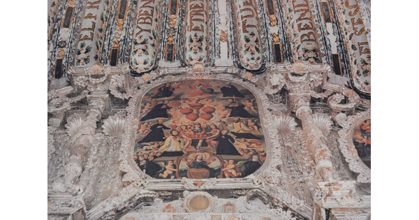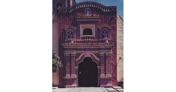 Facade of Santa Maria de Tonantzintla, near Cholula, Puebla, Mexico, March 15, 1956