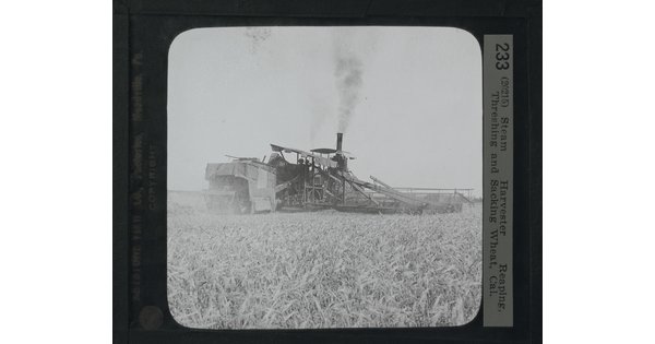 • Steam Harvester Reaping, Threshing and Sacking Wheat, Cal.