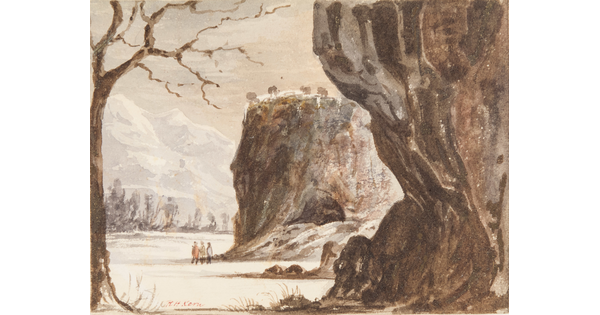 Toned lithograph with applied watercolor