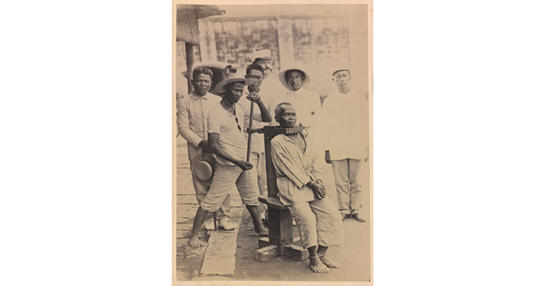 • [Group portrait with six men and a prisoner]