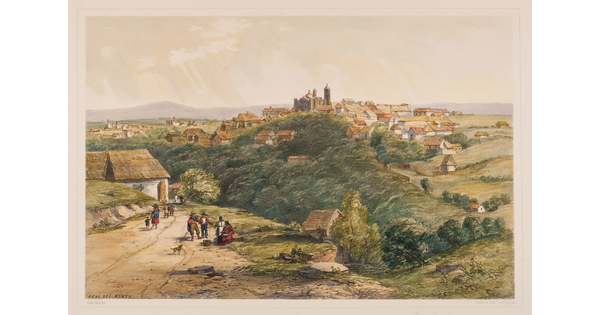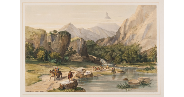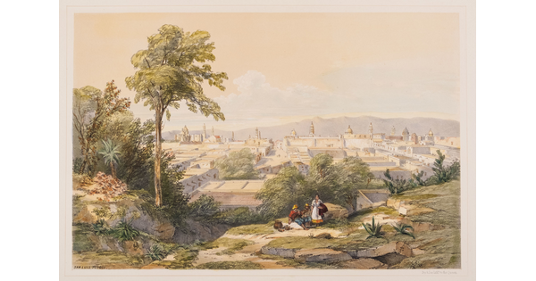 Toned lithograph with applied watercolor