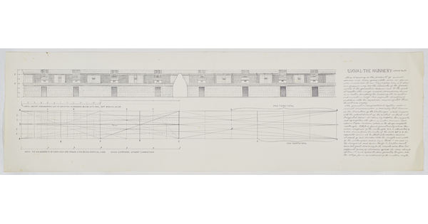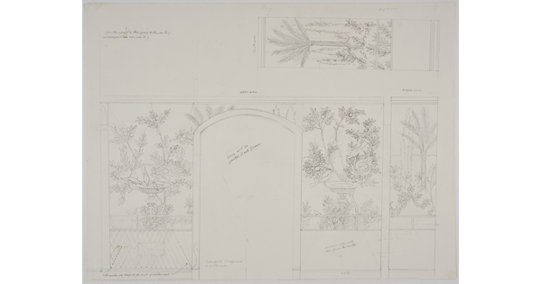 • [Drawing of studio hallway mural]