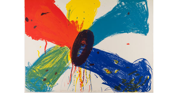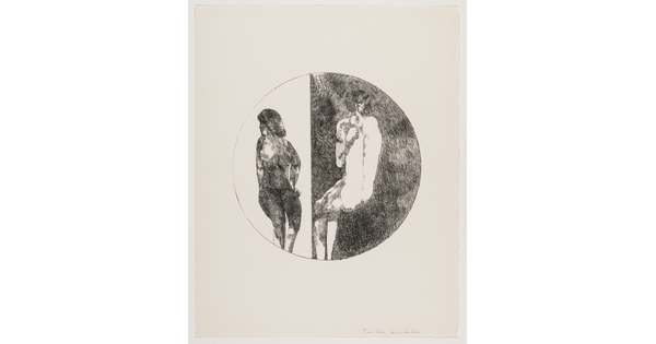 Toned lithograph with applied watercolor
