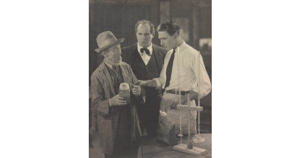 • [Percy Marmont with two older men and test tubes, "Idle Tongues"]