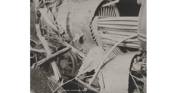 • [Side detail of wrecked train engine]