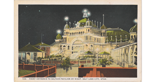 • Front Entrance to Saltair Pavilion by Night, Salt Lake City, Utah