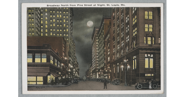 • No. 6953N - Broadway North from Pine Street at Night, St. Louis, MO.