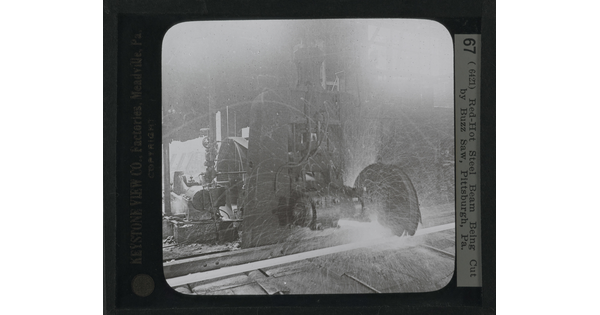 • Red-Hot Steel Beam being Cut by Buzz Saw, Pittsburgh, Pa.