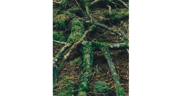 Moss-Covered Roots on Forest Floor, Great Spruce Head Island, Maine, August 2, 1982