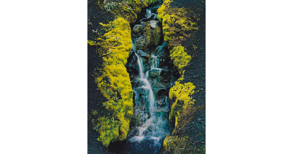 Moss, Waterfall, Cinders, near Dam Site on Thjorsa River, Iceland, June 26, 1972