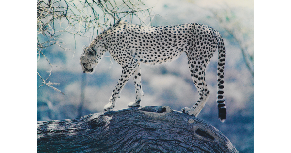 • Cheetah Standing on Horizontal Tree Trunk, Serengeti, Tanzania, Africa, 1970