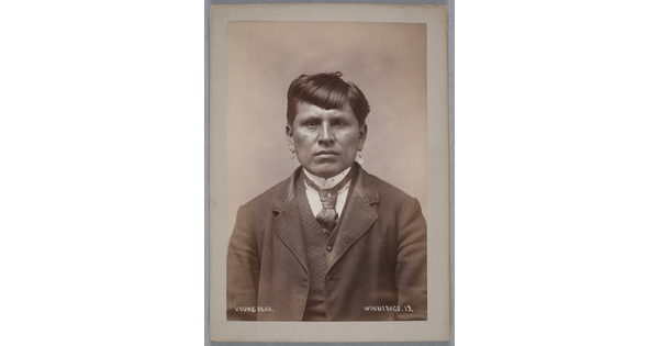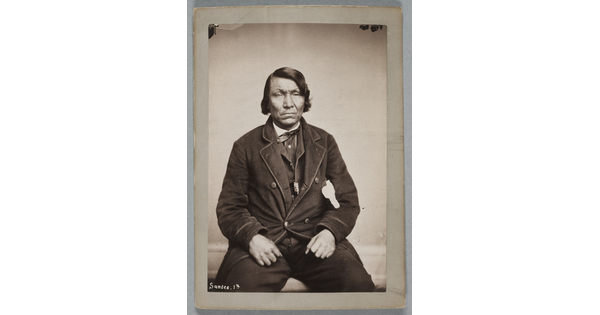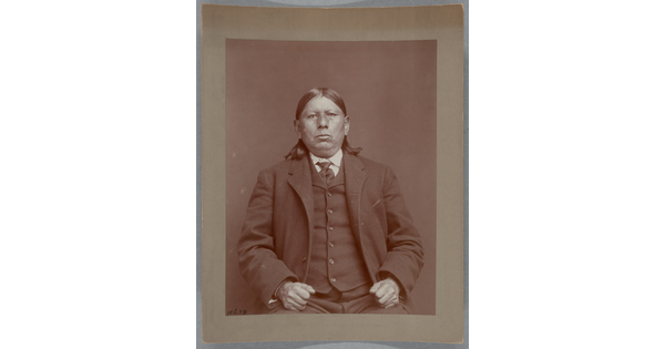 www.cartermuseum.org/.../portrait-front-man-partial-native-dress-bearclaw-necklace-ornaments-and-peace-medal